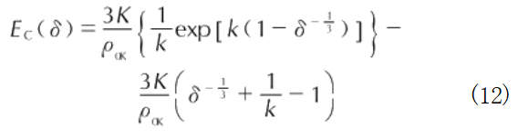 冷压Pc表示温度为OK时压缩金属晶格所产生的压力,取决于原子之间的相互作用,热压Pa代表原子在非0K下从平衡状态发生微小振动即原子热运动所产生的压力,该压力与材料的温度相关。以材料的冷能—冷压(Ec—Pc)曲线为参考,结合冲击波守恒关系,可以得到基于Ec—Pc曲线的冲击Hugoniot曲线[303,见下式: