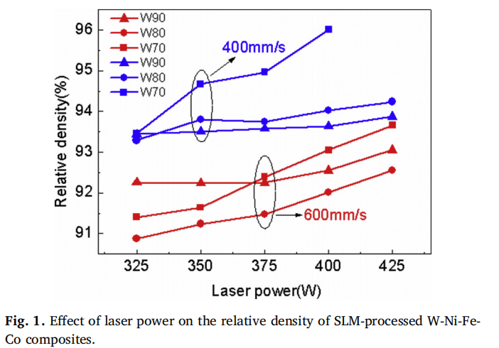 本研究采用高功率光纤激光器,通过SLM技术制备了W-Ni-Fe-Co复合粉末。添加少量Co元素有助于W复合材料的致密化。研究了激光工艺参数和化学成分对致密化、微观组织、相态和拉伸性能的影响,并分析了相应的金属结构。并探讨了其物理机理。