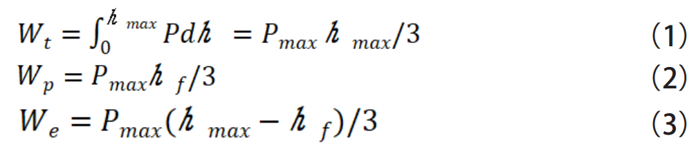在载荷-位移曲线中,卸载曲线以下的区域代表的是压痕实验中材料的弹性功(We),而卸载曲线和加载曲线之间的区域代表的是材料的塑性功(Wp),二者的比值k可以表征材料的性质。加载曲线与卸载曲线包围的面积可以表征加载过程中合金的塑性变形功,代表发生了多少塑性变形[13]。根据Tuck理论[14],塑性功(Wp)、弹性功(We)和总变形功(Wt)可分别表示为: